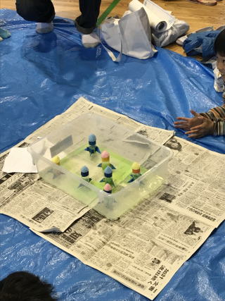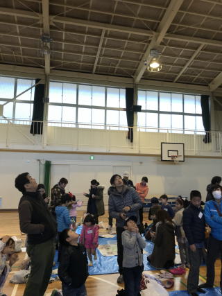 | 各グループに置いたケースの中に自分のロケットをセットして発射を待ちます。自分のロケットが「ポン」という発射音と共に打ち上がった瞬間、みんなの視線は、天井の方へ向いていました。一回目の発射の後、すぐに二回目にチャレンジしていました。子どもたちと保護者の方の目が輝いていました。 | |||
